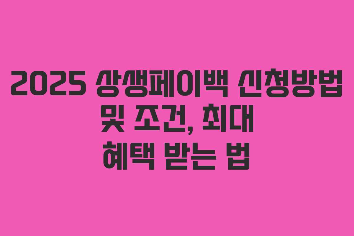 2025 상생페이백 신청방법 및 조건, 최대 혜택 받는 법