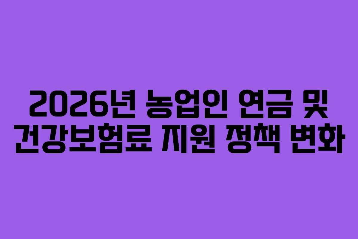 2026년 농업인 연금 및 건강보험료 지원 정책 변화