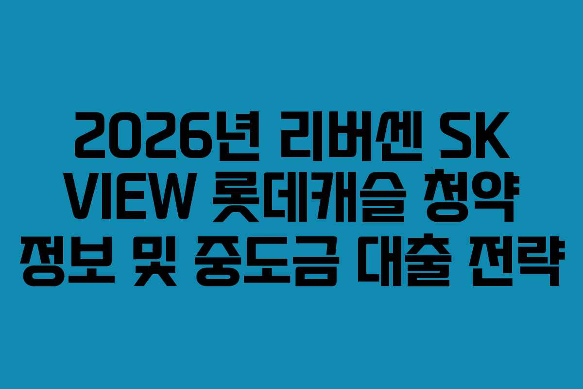 리버센 SK VIEW 롯데캐슬의 중도금 대출은 과거와 다르게 세부 조건이 변경되었습니다. 2026년 기준 중도금 대출과 관련된 주요 사항을 아래와 같이 정리해 보았습니다.