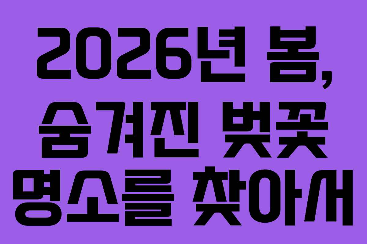 봄이 다가오면서 벚꽃이 만개하는 시기가 곧 찾아옵니다. 많은 이들이 벚꽃을 즐기기 위해 유명한 명소로 발걸음을 옮기지만, 그로 인해 혼잡한 인파 속에서 제대로 즐기기 어려운 경우도 많습니다. 그래서 이번에는 2026년 기준으로, 아직 많은 사람들에게 알려지지 않은 숨겨진 벚꽃 명소를 소개하고자 합니다. 여유롭게 벚꽃을 감상하고 싶은 분들은 주목해 주세요.
