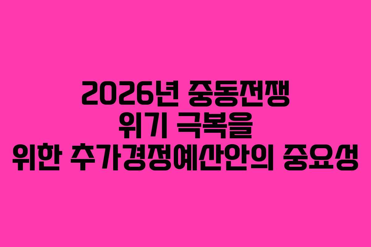 2026년 중동전쟁 위기 극복을 위한 추가경정예산안의 중요성