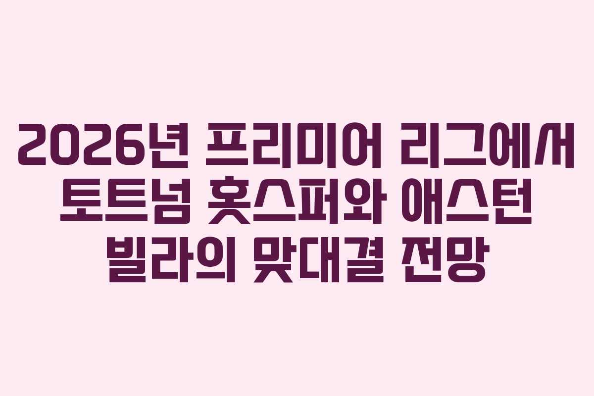 2026년 상반기, 프리미어 리그의 흥미진진한 일정을 기다리는 팬들에게 토트넘 홋스퍼와 애스턴 빌라의 경기는 더욱 기대를 모으고 있다. 두 팀 모두 뛰어난 성적을 유지하고 있으며, 서로의 전력을 확인할 수 있는 중요한 경기가 될 것이다. 이 글에서는 각 팀의 현재 상태와 과거 데이터를 참고하여 이번 맞대결의 의미를 살펴보려 한다.
