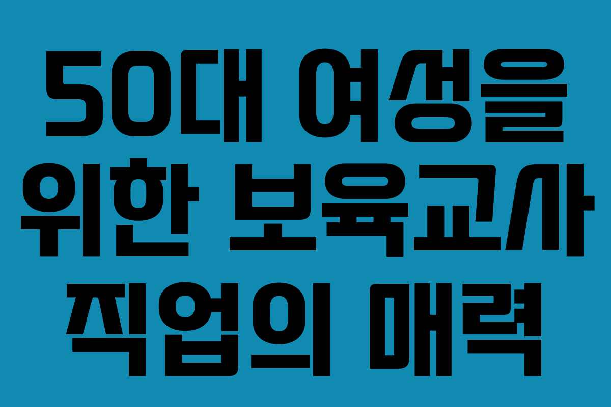 보육교사는 특히 안정적인 직업으로, 아이들을 돌보는 일은 지속적인 수요가 있습니다. 경력이 단절된 50대 여성에게도 좋은 선택입니다.