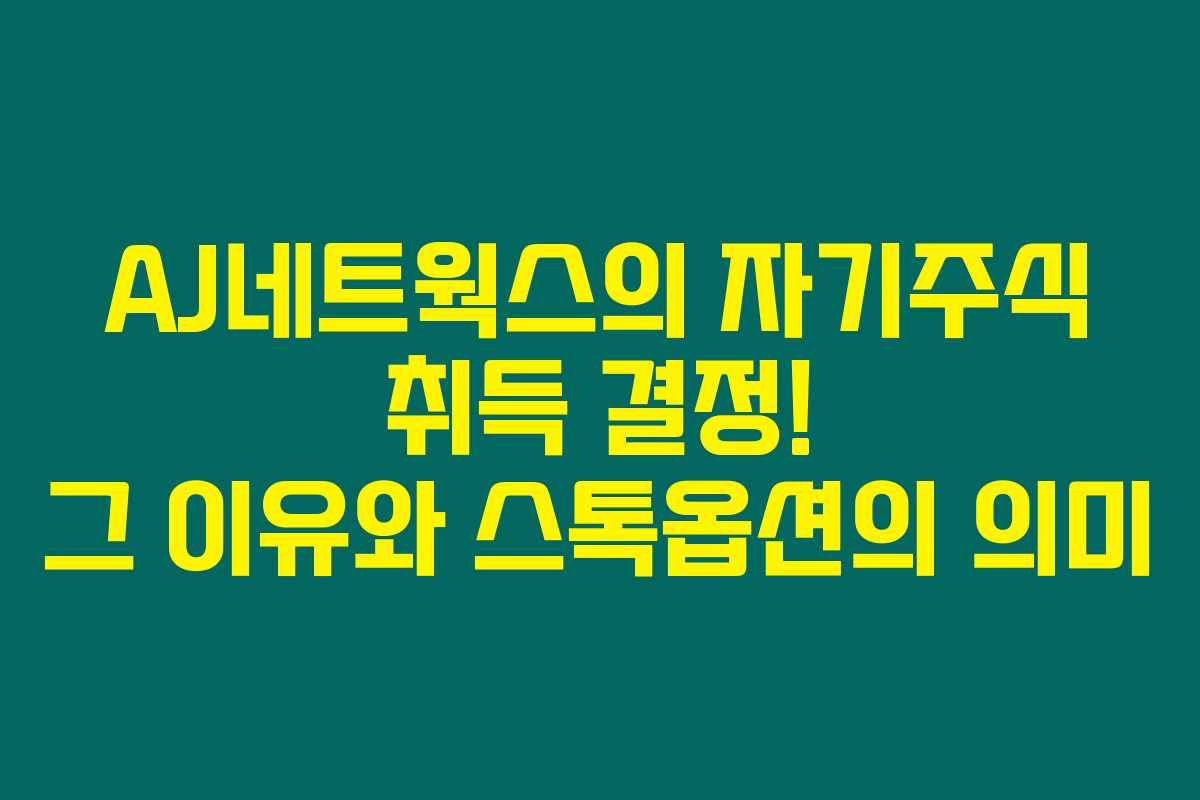 제가 알아본 바로는 AJ네트웍스가 최근 발표한 자기주식 취득결정에 대해 많은 투자자들과 관심이 집중되고 있습니다. 이번 결정은 단순한 주식 매입이 아닌, 임원들의 주식매수선택권 행사 재원을 마련하기 위한 전략으로 여겨지기 때문이에요. 아래를 읽어보시면, AJ네트웍스의 스톡옵션과 자기주식 취득의 의미에 대해 좀 더 깊이 이해할 수 있을 것입니다.