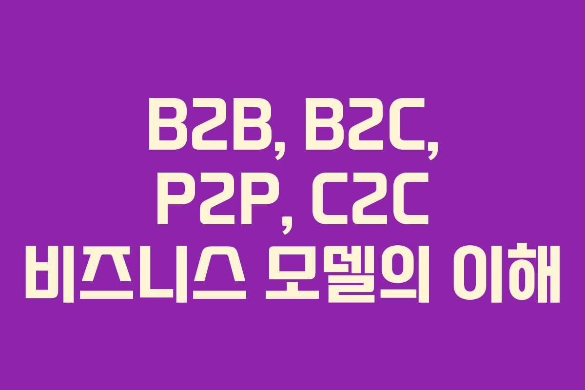 현대 비즈니스 환경에서 자주 언급되는 용어인 B2B, B2C, P2P, C2C는 각각 기업 간, 기업과 소비자 간, 개인 간의 거래를 나타냅니다. 이러한 비즈니스 모델은 기업이 어떻게 가치를 창출하고 전달하는지를 설명하는 중요한 개념입니다.