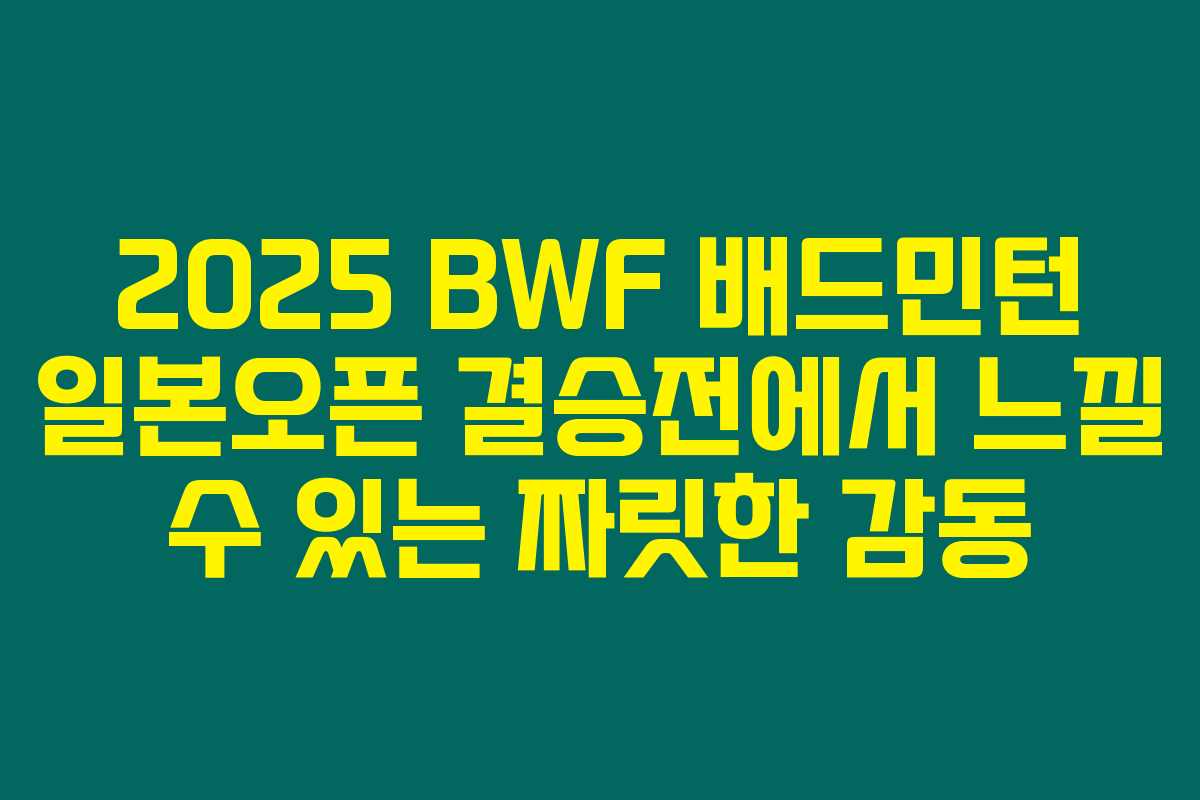 2025 BWF 배드민턴 일본오픈 결승전은 단순히 경기에 그치지 않고, 선수들의 열정과 팬들의 사랑이 어우러지는 특별한 순간입니다. 이 결승전 중계를 통해 배드민턴의 멋진 순간들을 생생하게 즐기고, 앞으로의 배드민턴에 대한 관심을 더욱 높이는 계기가 되길 바랍니다.