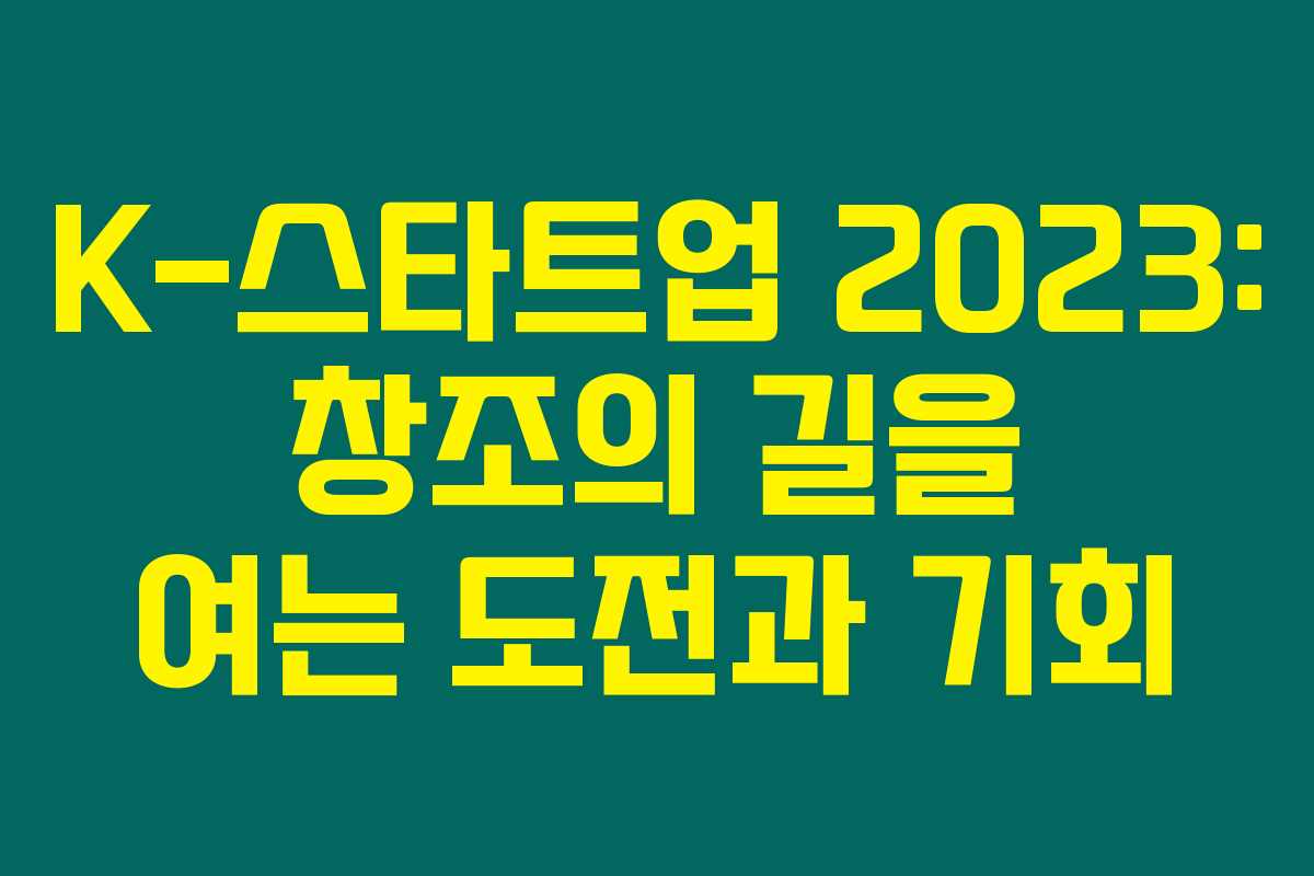 K-스타트업 2023은 매해 개최되는 대한민국의 대규모 창업 경진대회로, 예비 창업자와 창업 기업들에게 창업 아이디어와 사업 계획을 공유하며 성장할 수 있는 기회를 제공합니다. 제가 직접 체크해본 바로는, 이 대회를 통해 수많은 창업 팀들이 실질적인 지원을 받고 성장해 나가는 모습을 보았습니다.