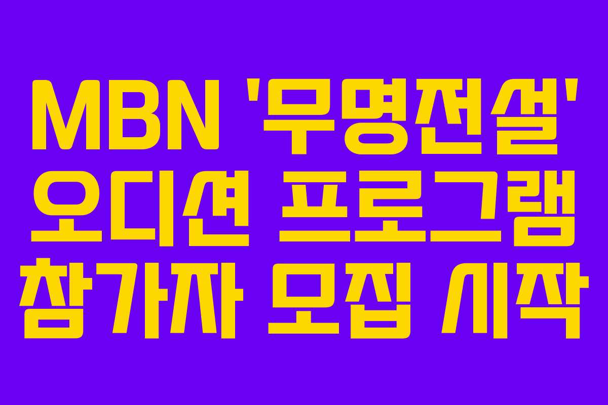 MBN '무명전설' 오디션 프로그램 참가자 모집 시작