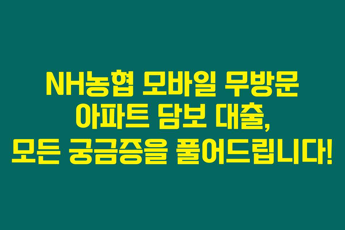 제가 직접 알아본 바로는 NH농협의 모바일 무방문 아파트 담보 대출 상품은 특히 바쁜 현대인들에게 매우 유용한 서비스라는 것을 느꼈어요. 이 대출 상품은 영업점을 방문하지 않아도 휴대폰으로 간편하게 진행할 수 있어서 많은 분들이 관심을 두고 있죠. 아래를 읽어보시면 NH농협 모바일 무방문 아파트 담보 대출의 금리, 한도, 조건에 대해 상세히 알 수 있을 거예요.