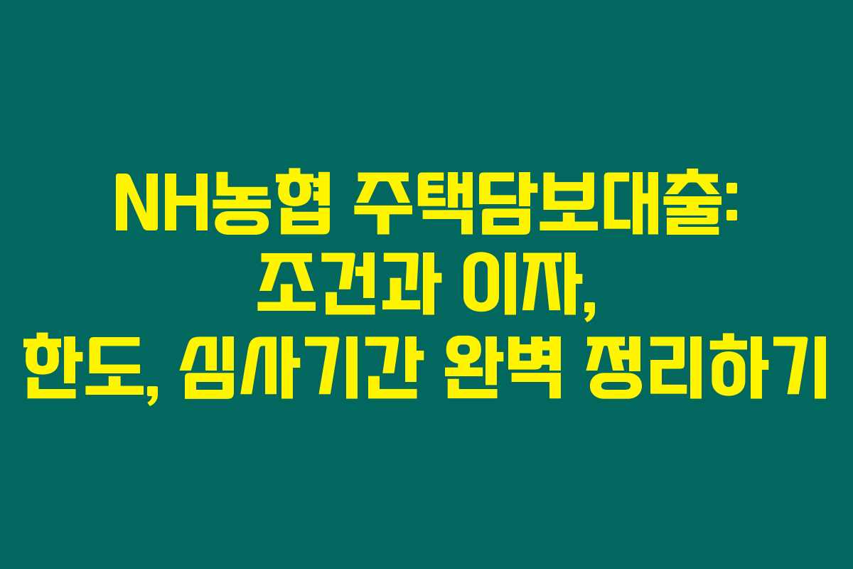 모든 주택 구매자, 대출을 꿈꾸는 분들을 위한 아주 유용한 정보입니다. 제가 알아본 바로는 NH농협 주택담보대출(일명 주담대)은 주택을 담보로 하는 대출 상품으로, 금리가 비교적 낮고 상환 조건이 다양해 많은 분들이 선호하고 있죠. 아래를 읽어보시면 이 대출의 조건, 한도, 이자, 그리고 심사기간에 대해 상세히 알아보실 수 있어요.