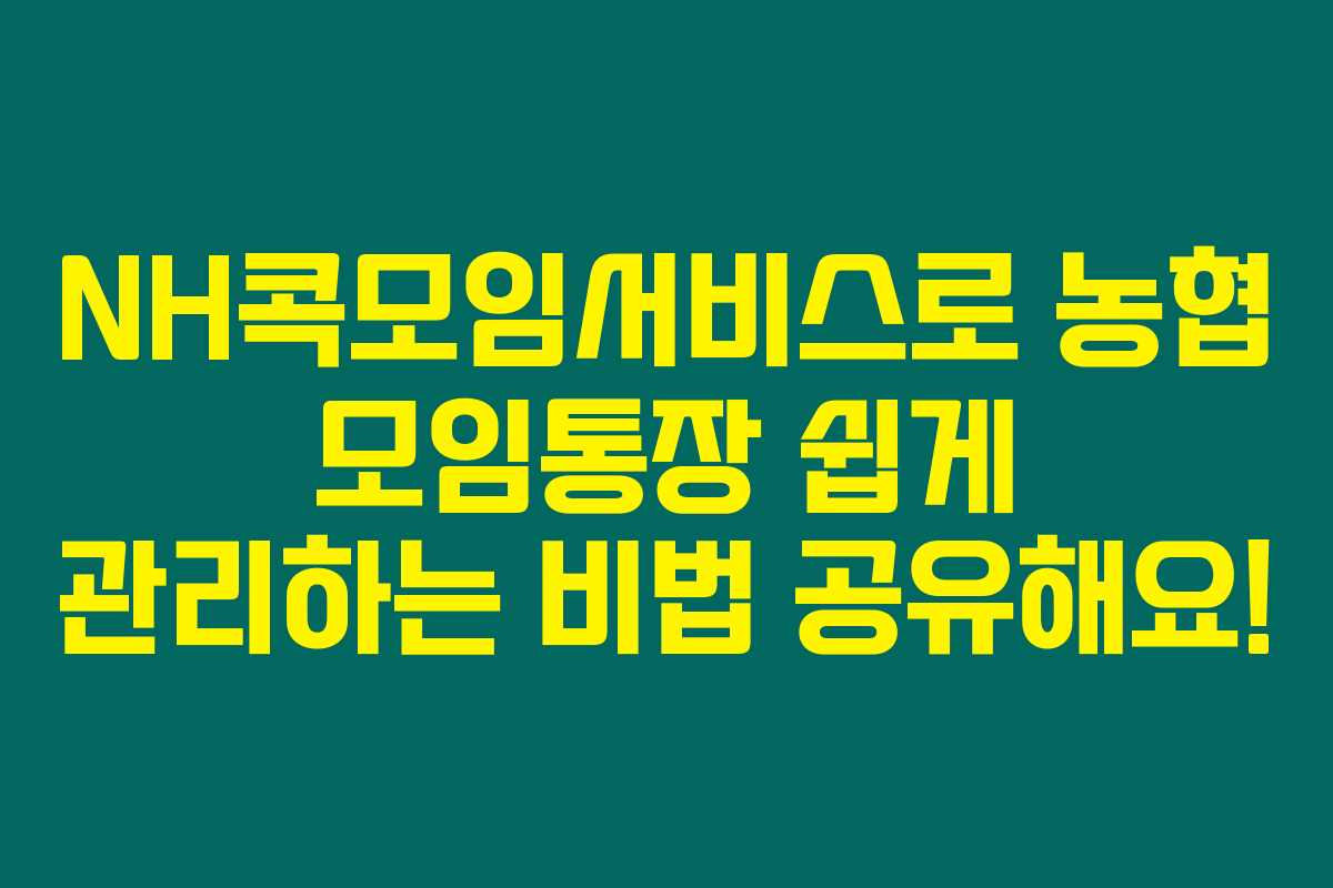 제가 알아본 바로는, NH콕모임서비스는 모임 자금 관리를 효율적으로 돕는 최적의 방법이에요. 농협의 모임통장을 통해 쉽고 간편하게 회비를 관리할 수 있는 방법을 소개합니다. 아래를 읽어보시면 농협 모임통장의 개설부터 관리까지의 모든 과정을 이해할 수 있을 거예요.