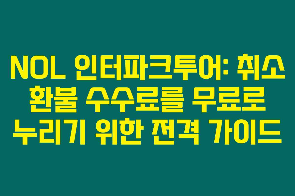 제가 직접 리서치해본 바로는, 최근 NOL 인터파크투어가 제공하는 항공권 취소 및 환불 수수료 무료 프로모션은 여행 준비에 있어 매우 큰 혜택이 될 수 있습니다. 이 글에서는 각 항공사별로 예약 방법과 주의할 점들을 정리해보았습니다. 아래를 읽어보시면, 안전하고 합리적인 해외여행을 준비하는 데 큰 도움이 될 것입니다.