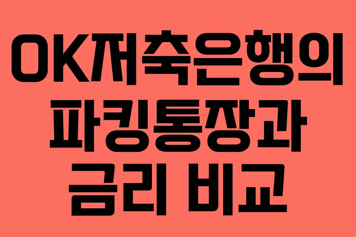 2026년을 기준으로 OK저축은행의 파킹통장 상품과 이자 금리에 대한 정확한 정보를 제공하겠습니다. 파킹통장은 언제든지 입출금이 가능하여 자금을 유동적으로 관리할 수 있는 장점을 가지고 있습니다. 특히, 저축은행에서 제공하는 다양한 상품들은 예금자 보호와 함께 높은 금리를 적용받을 수 있어 많은 이들의 관심을 받고 있습니다. 이번 블로그에서는 OK저축은행의 상품을 살펴보며 금리에 대한 세부 정보를 비교해보겠습니다.