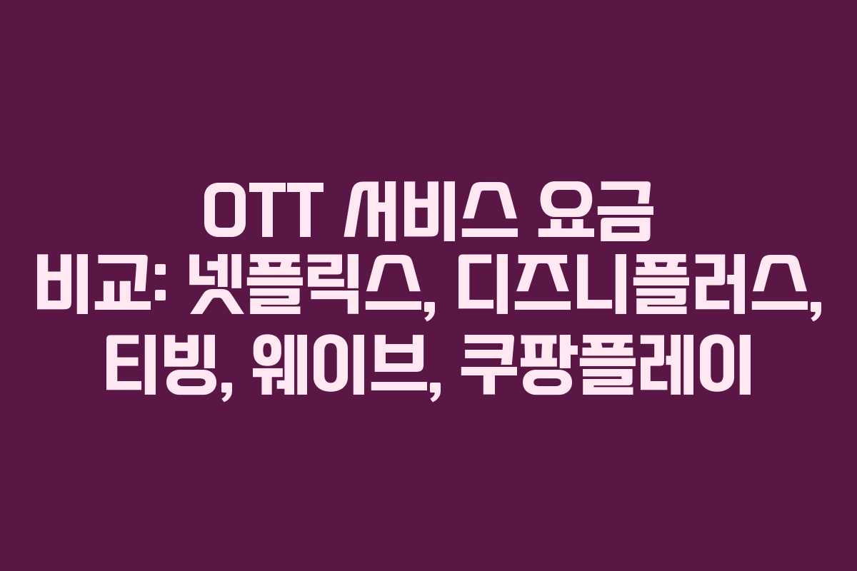 OTT(Over The Top) 서비스는 최근 많은 사람들에게 인기를 끌고 있으며, 다양한 선택지가 존재합니다. 이 글에서는 넷플릭스, 디즈니플러스, 티빙, 웨이브, 쿠팡플레이의 요금을 비교하고, 이용요금을 절약하는 방법에 대해 알아보겠습니다.